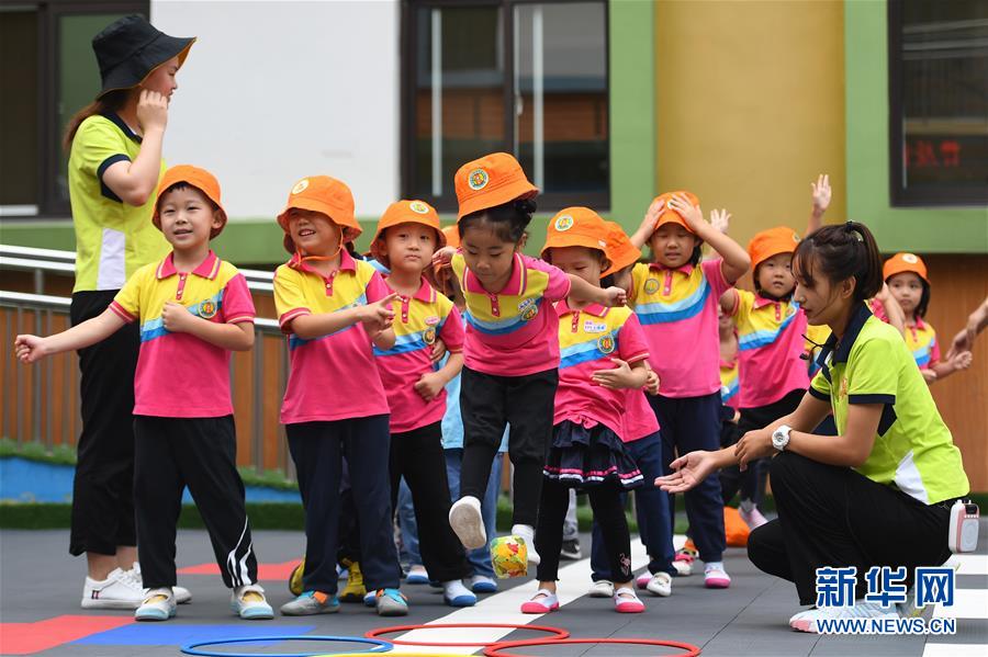 幼儿园中班的小朋友在活动课上做游戏(9月16日摄)。 新学期开学以来,山东济南童贝尔幼儿园从儿童视角出发,创新课程设置,寓教于乐,营造宽松和谐的环境,促进孩子们健康成长。 新华社记者 朱峥 摄
