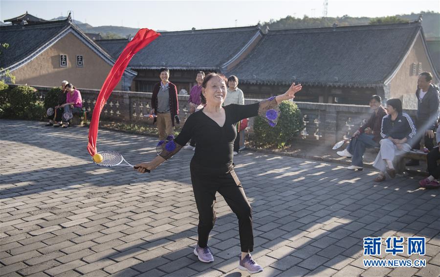 9月18日,游客在棣花古镇观赏居民们表演的晨舞。 在秦岭深处的陕西省商洛市丹凤县丹江之滨,有一处美丽的棣花古镇。宋金边城、清风老街、千亩荷塘、商山绿道、丹江国家湿地公园等美景,让游客在历史与文化、生态与自然、民风与民俗的交融中,心旷神怡,流连忘返。 新华社记者 陶明 摄