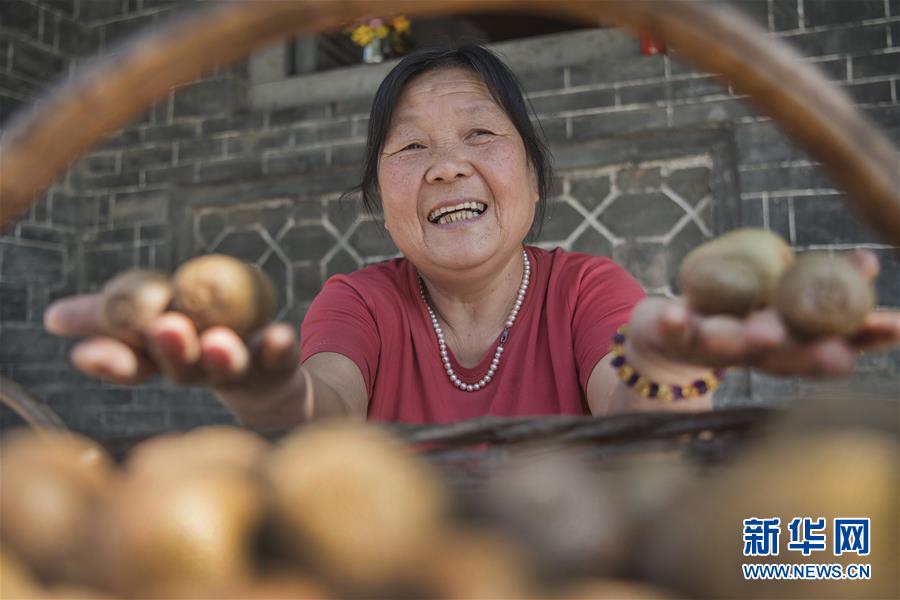 9月18日,商户梁蕊在棣花古镇清风街上推销野生猕猴桃。 在秦岭深处的陕西省商洛市丹凤县丹江之滨,有一处美丽的棣花古镇。宋金边城、清风老街、千亩荷塘、商山绿道、丹江国家湿地公园等美景,让游客在历史与文化、生态与自然、民风与民俗的交融中,心旷神怡,流连忘返。 新华社记者 陶明 摄