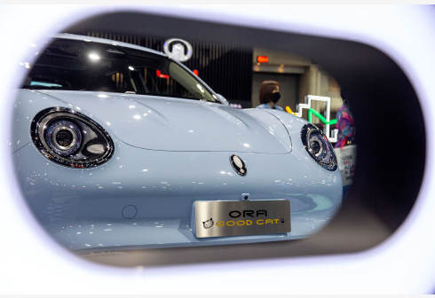 这是12月1日在泰国曼谷举行的第38届泰国国际车展上拍摄的欧拉好猫电动车。