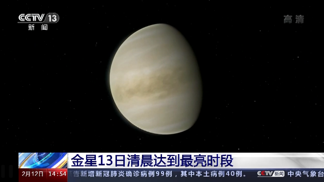 北京天文馆高级工程师 寇文:金星就是天上最亮的一颗星,它自己本身不同的时间,它的亮度也会有变化。在什么时候最亮呢?它既离地球足够近,同时它被太阳照亮的那一面朝向地球的面积足够多,那么今年的2月13日正好是处于这一阶段,金星的亮度达到最亮。