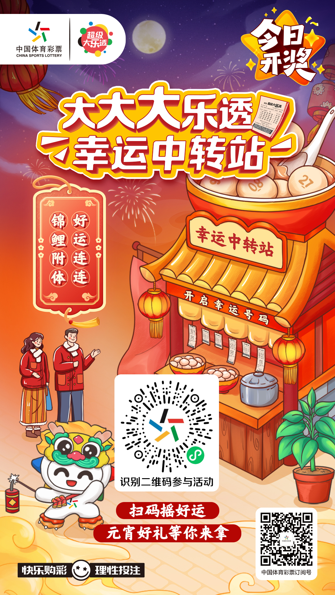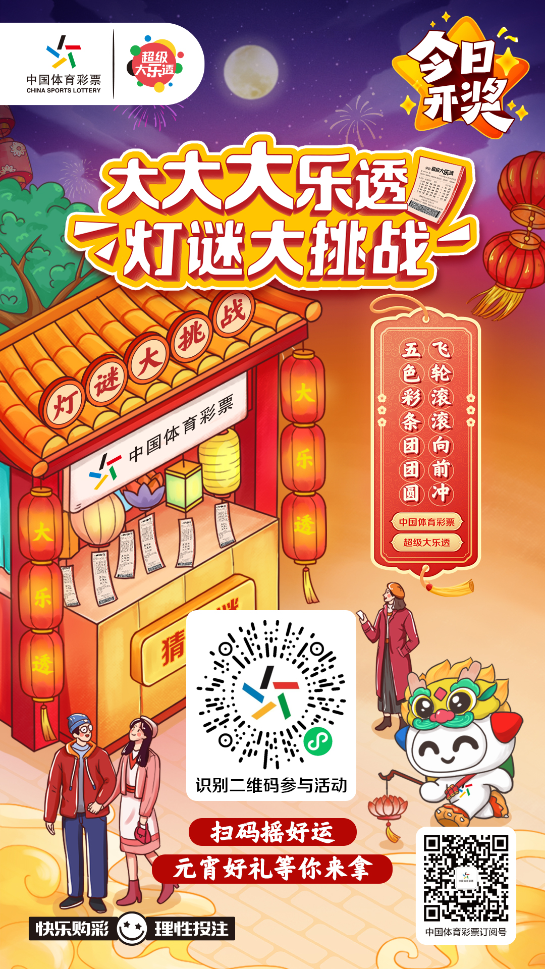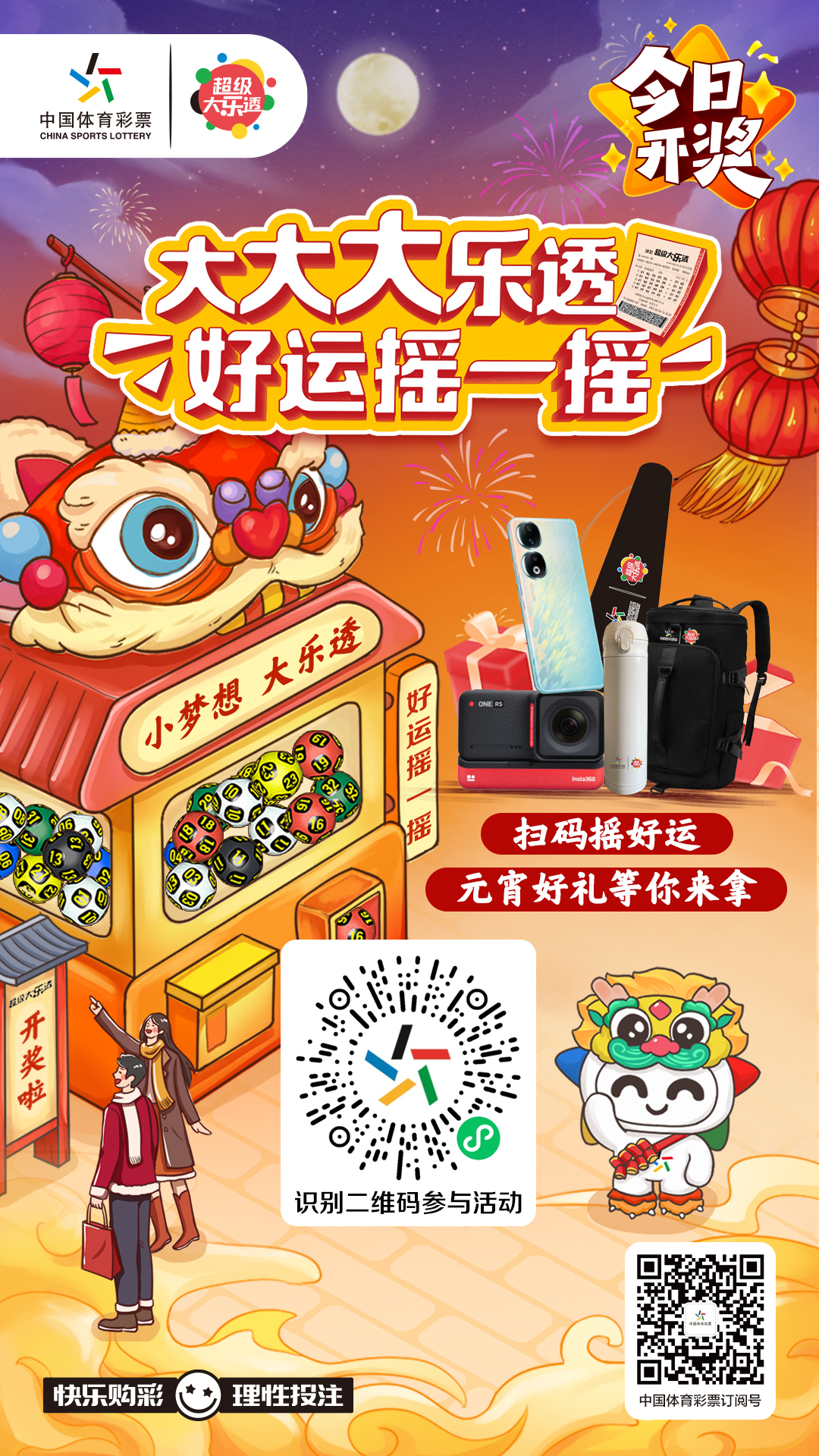 体彩大乐透今日开奖,扫码摇好运,元宵好礼等你来拿!