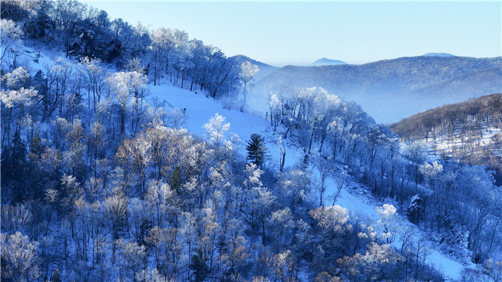2024年11月23日的清晨,北大湖滑雪度假区玉树琼枝,银装素裹,高山雾凇带来的奇观,让人仿佛置身仙境。