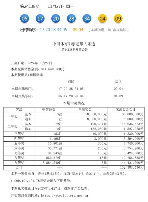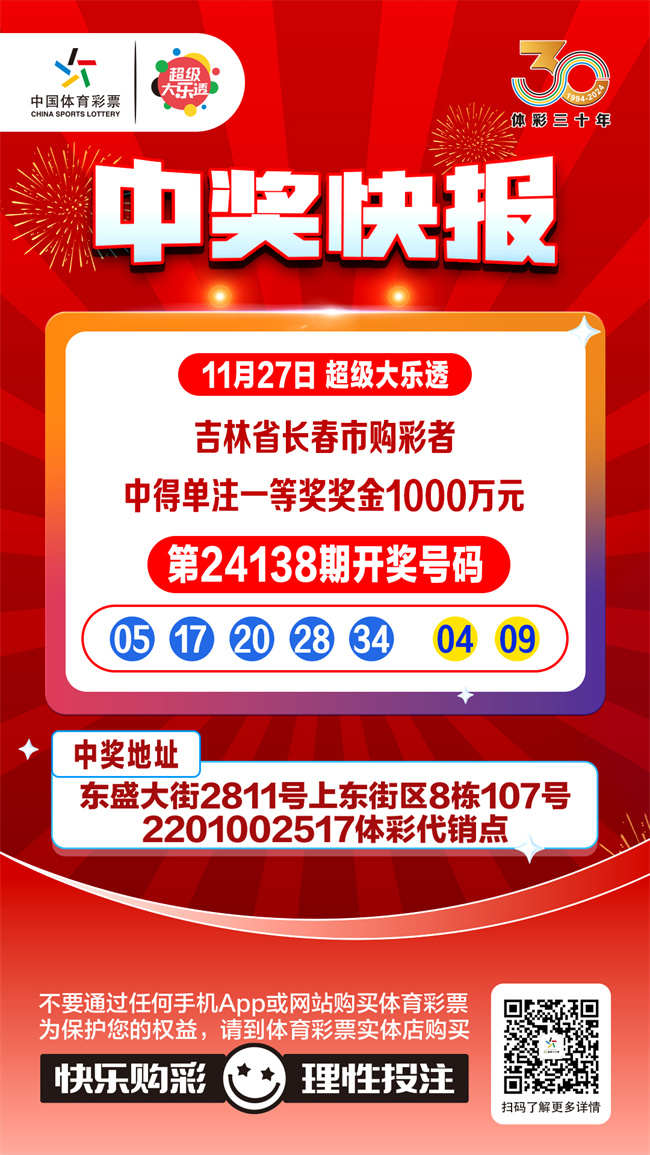 长春市购彩者喜中大乐透单注一等奖1000万元