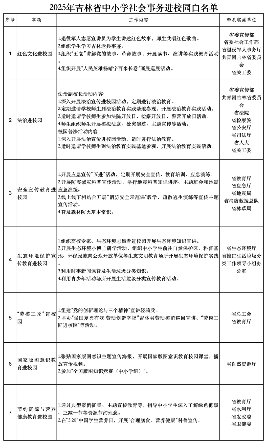 ★日前,吉林省教育厅发布《关于公布2025年吉林省中小学社会事务进校园白名单的公告》。