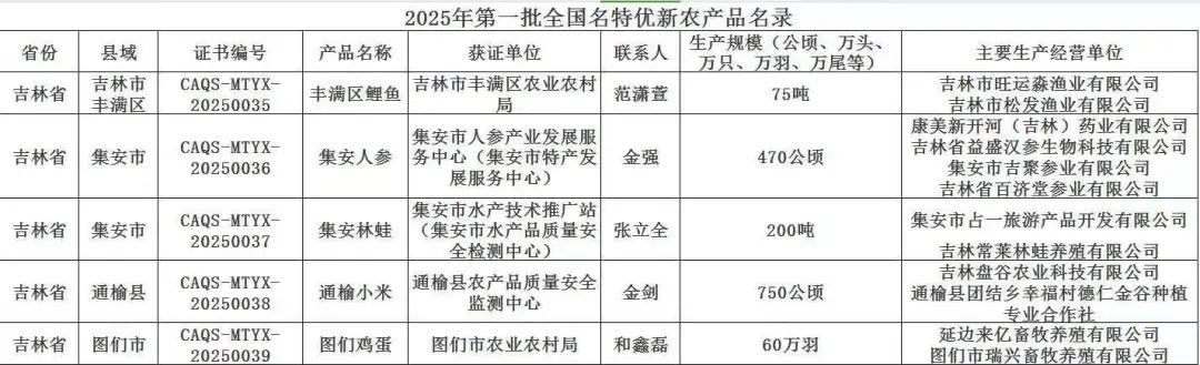 ★近日,农业农村部农产品质量安全中心公布《2025年度第一批全国名特优新农产品名录》。我省“丰满区鲤鱼”“通榆小米”“集安人参”“集安林蛙”“图们鸡蛋”五大特色农产品荣获全国名特优新农产品证书。