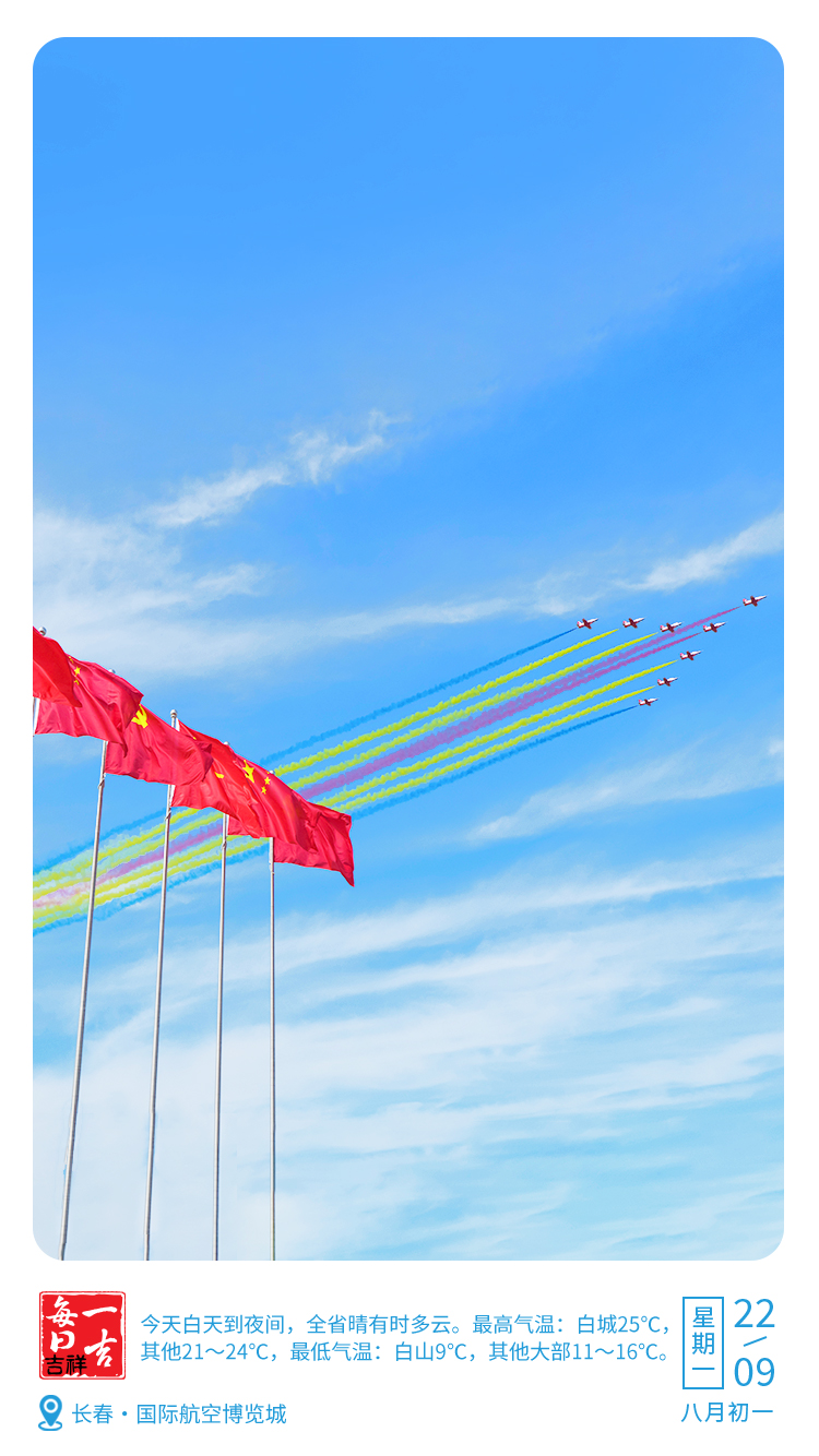 【天气】今天白天到明天白天,全省晴有时多云。明天夜间到24日白天,全省多云,白城东部、松原西部、四平西部、通化南部、白山东南部、延边东部、长白山保护开发区有中雨,部分地方有大雨,其他地方有阵雨或雷阵雨。