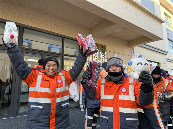 “最近长春这场降雪很大,我们一直在街巷奋战作业,尽管天气很冷,但收获到这些关爱让我们心里很暖,也很感动!”长春市南关区环境卫生管理中心富裕大队二班环卫工人张树权表示,“这份心意我们收到了,谢谢体彩,同时谢谢社会上所有关心我们的人!”这份关爱让他们在寒冷的冬日里感受到了浓浓的暖意,新的一年会继续做好本职工作,为城市环境贡献自己的力量。