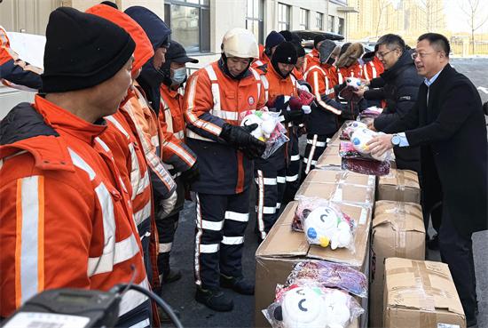 寒风凛冽,真情愈暖;岁末深冬,善行如春。12月30日上午,吉林省体育彩票管理中心联合城市晚报开展“微光汇聚,‘益’路同行,一起温暖环卫工人”公益主题活动,在长春市南关区城管局院内温情举行。1000个棉帽、1000副棉手套、1000条围脖——这份精心筹备的“温暖三件套”以及可爱的乐小星玩偶,满载着吉林体彩的爱心与牵挂,送到一线“城市美容师”手中。
