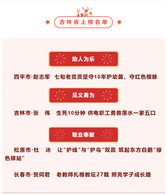 ★2025年第四批“中国好人榜”发布仪式,于2026年1月23日在四川省宜宾市举办。其中,吉林省4人光荣上榜。
