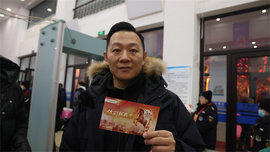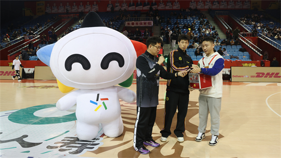 球迷施同学表示,他非常喜欢篮球,一直都来到主场支持球队,“今天上半场东北虎打得非常nice,看得很爽,快过年了能在看比赛的同时获得体彩的礼品感觉很幸运,可以说是双喜临门了!”