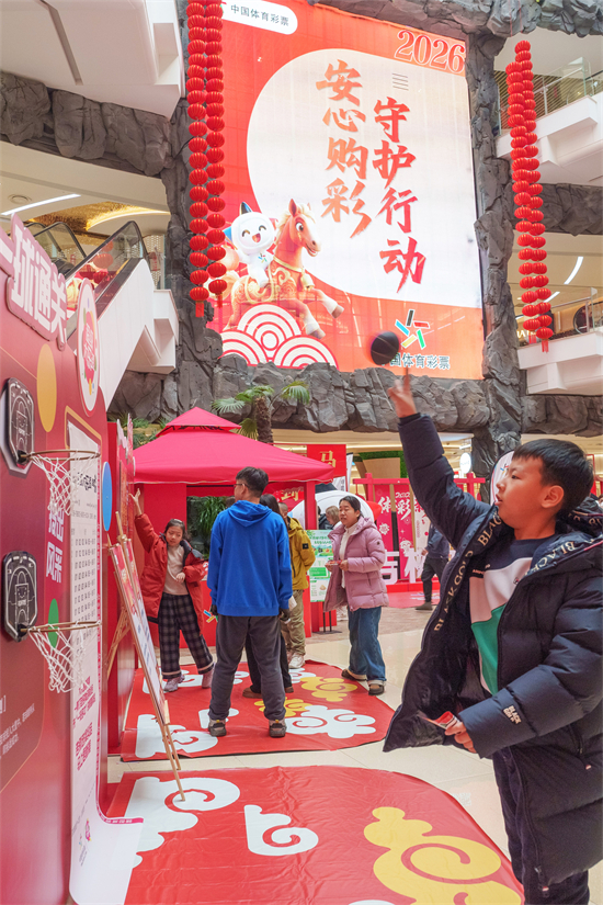 “大乐透一球通关”主题互动区,将大乐透开奖元素与趣味闯关相结合,让大家沉浸式感受彩票的乐趣,游戏现场设置投篮装置,参与者投掷彩球,连续投中两个上下篮框即可完成闯关,沉浸式解锁大乐透的独特魅力。2026马年,体彩顶呱刮推出“新春大吉2026”“马到成功”“骏马贺岁”等6款生肖主题即开票,将骏马昂扬精神与新春喜庆氛围完美融合。本次拼图游戏便以其中这一款的马年生肖票的精美票面为素材,打造了拼图关卡,既有适合小朋友参与的,也有适合成年人挑战的,拼出的不仅是生肖美景,更是马年“马到成功、一马平川”的美好期许。