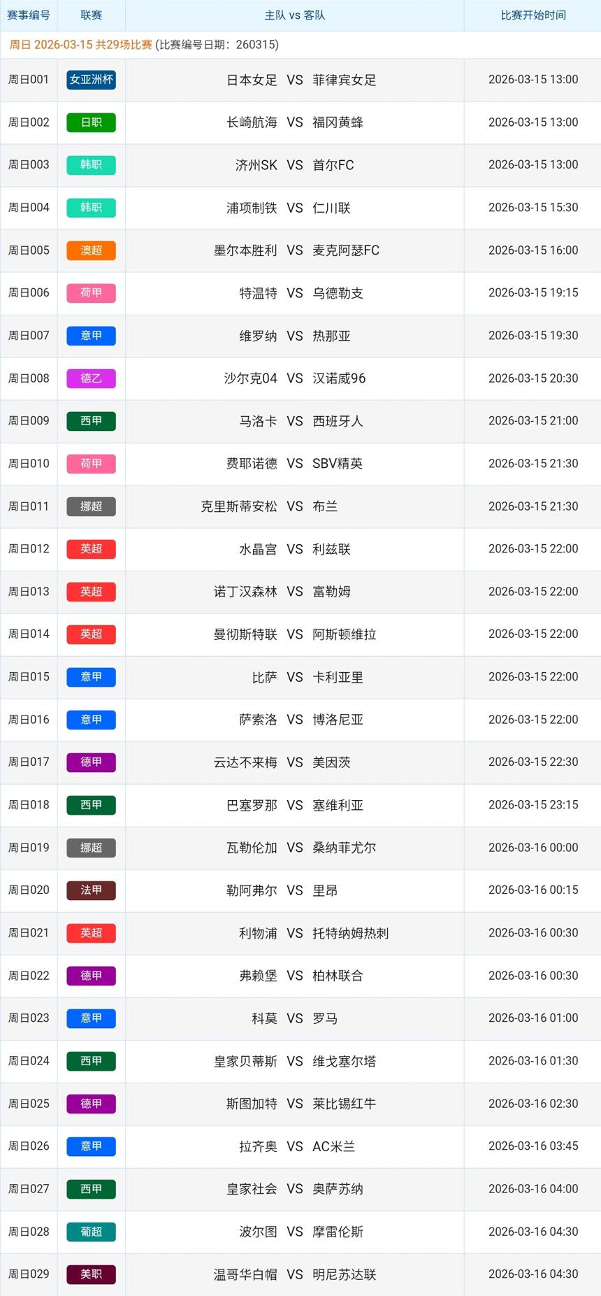 竞彩足球赛事