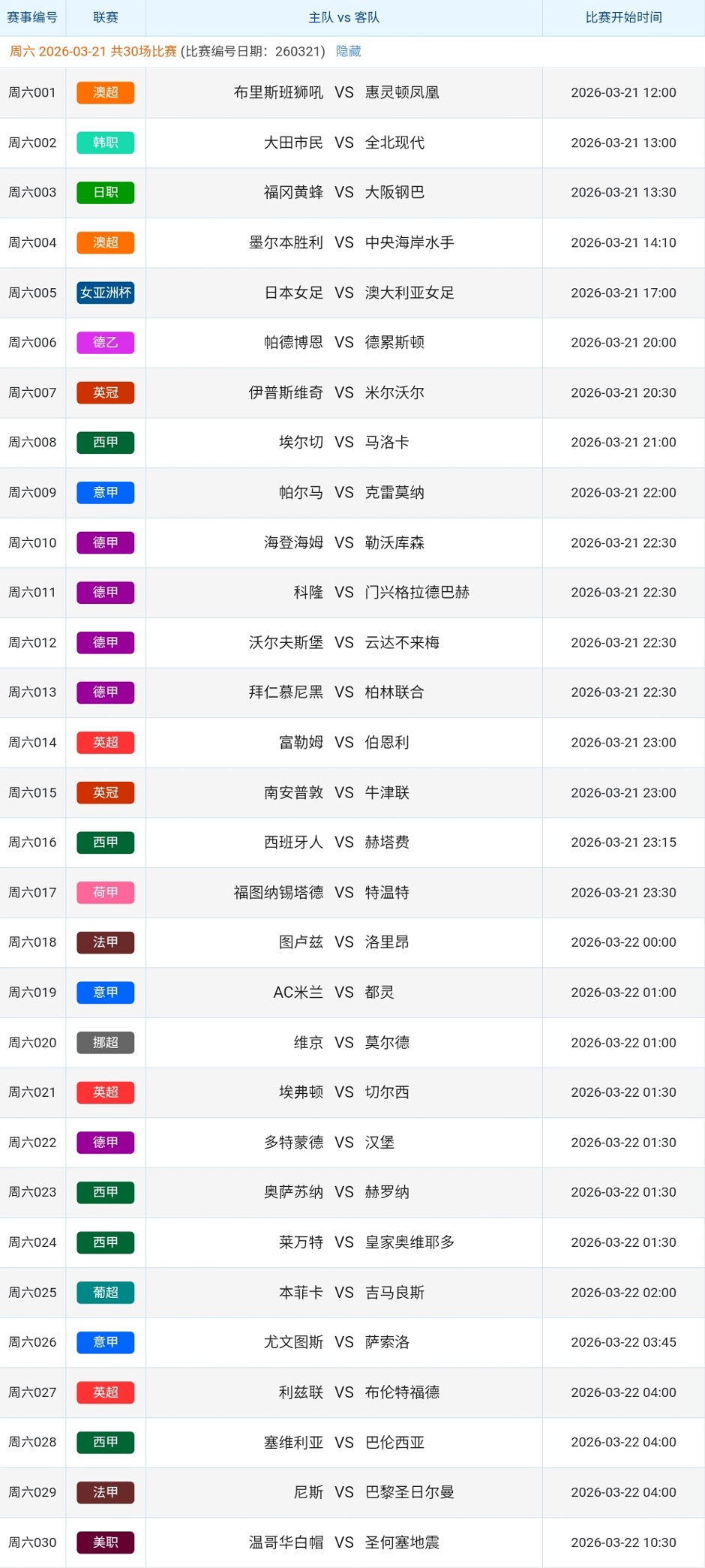 竞彩足球赛事