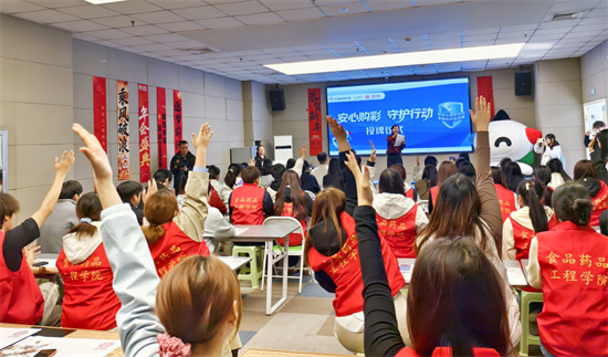 在反诈微课堂内,互动环节精彩开启,现场氛围热烈。主持人围绕购彩反诈核心知识,分享了“认准正规线下渠道、坚守理性投注心态、主动拒绝并举报骗局”三大关键提醒,并通过“购彩谣言真假辨”“反诈问题抢答”的形式与大学生们互动。“线上体彩APP能提高中奖率吗?”“彩票可以随便让别人代买吗?”一个个问题抛出,同学们踊跃举手、积极作答,在趣味互动中深化了对购彩反诈知识的理解,牢牢记住了体彩开奖全程公证、实体店会劝导大额投注等重要知识点。