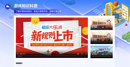 场景一:游戏知识科普。想搞懂体彩有多少玩法?中奖率是多少?在这里明明白白告诉你!你可以详细了解各类彩票游戏的规则、奖金计算方式,明明白白购彩、清清楚楚参与。