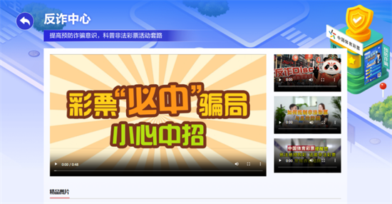 场景四:反诈中心。非法彩票?骗局套路?统统退下,这里给你一双“火眼金睛”!这是你的专属“防骗盾牌”,帮助你识别各类的非法彩票和骗局套路,帮助你学会应对方法,守护你的购彩资金安全。