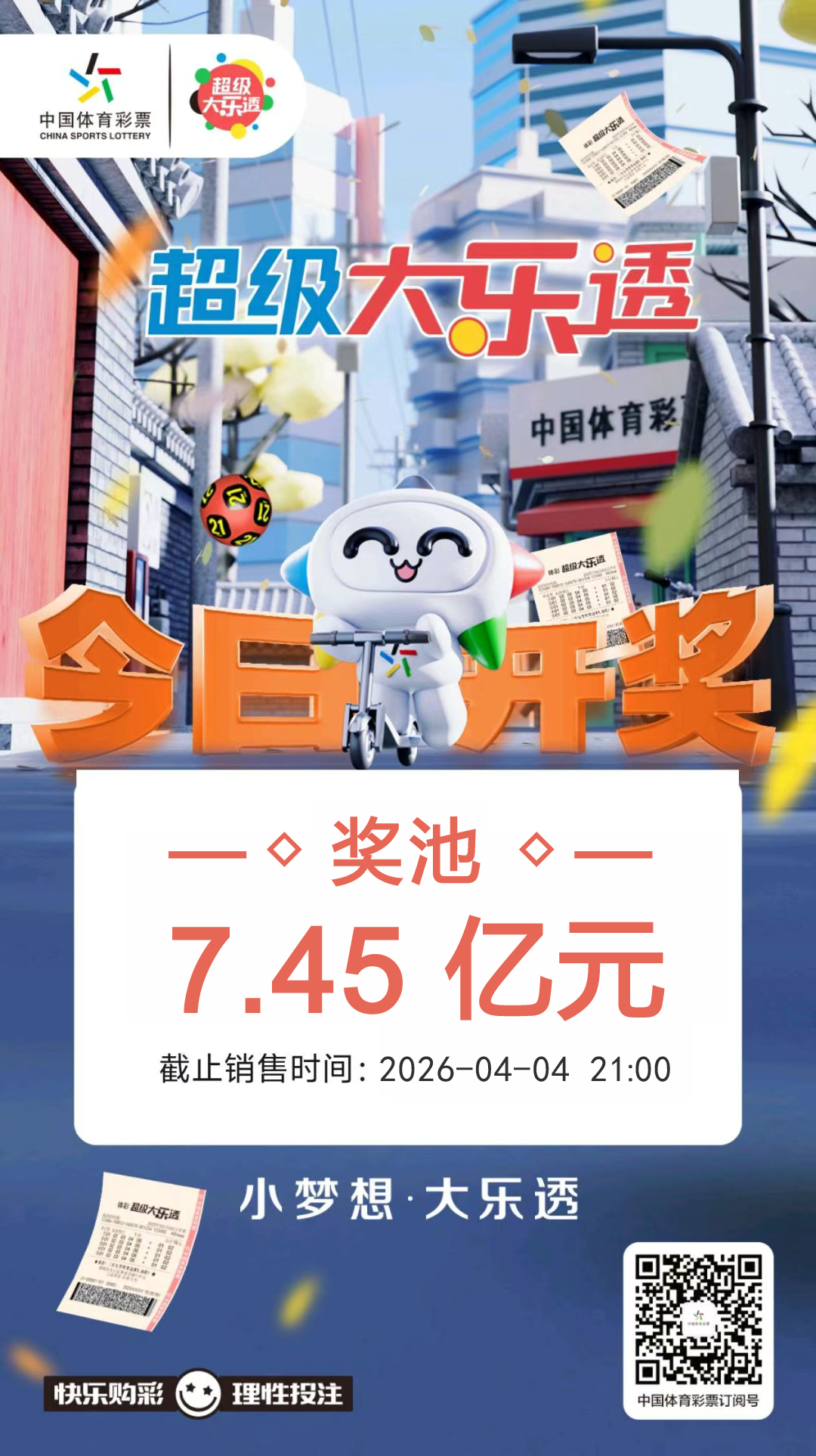 【大乐透】超级大乐透今日开奖 奖池7.45亿元!吉林体彩春季欢乐购 赠票福利火热进行中
