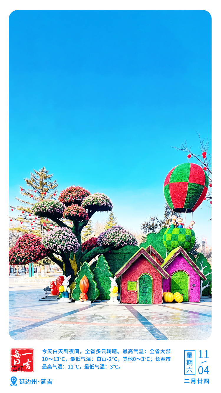 ·今天白天,全省多云转晴。最高气温:全省大部10~13℃,最低气温:白山-2℃,其他0~3℃。