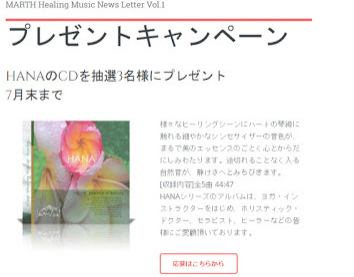 后继团体之一的“慰藉”股份公司(东京都港区)。公司的网站“MARTH官方网站”上发布消息称将会抽选3名顾客赠送名为“MARTH夏威夷疗愈”的CD。