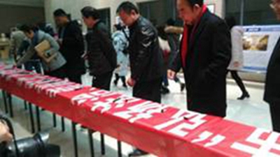 在“弘扬法治、崇尚科学、反对邪教”横幅上签名