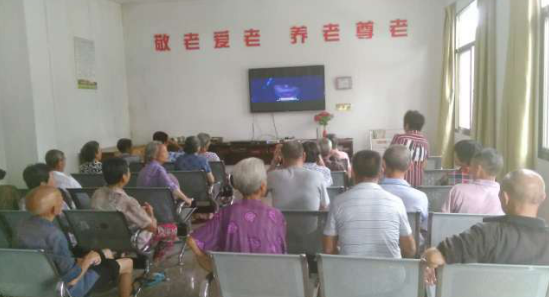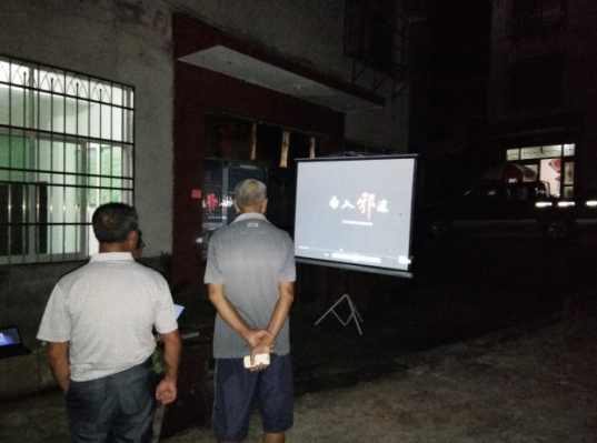 光明乡借助老年人活动中心,放映露天反邪教电影