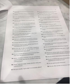 在答卷表上有三列选择项,要求参与者做出加(+)、中性(m)、减(-)标识。“+”意味着基本上“是的或者确定如此”,“m”意味着“不确定”,“-”意味着“基本上或确定没有”。