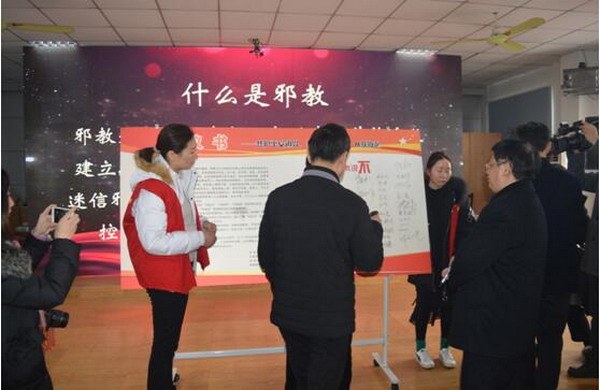 活动现场,两地还开展了“跟邪教说不”倡议签名活动,共同合作旗帜鲜明的反对邪教,共同抵制歪风邪气,彻底铲除邪教滋生土壤。