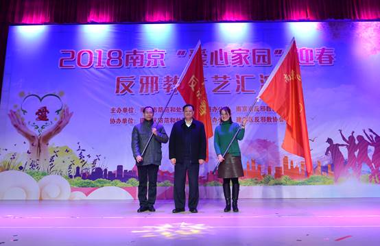 2月1日下午,南京市防范办和南京市反邪教协会共同举办了以“喜迎新春,传承文明,反对邪教,共建和谐”为主题的“2018南京‘爱心家园’迎春反邪教文艺汇演”。