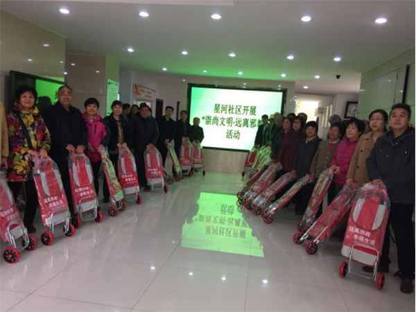 定制家用购物小推车。通过社区机构发放到1300多名居民手中,伴随居民群众春节外出购物,这些“行走的反邪教宣传员”将走入潍坊的大街小巷,将“远离邪教,幸福生活”的文明理念散播到城市各个角落。