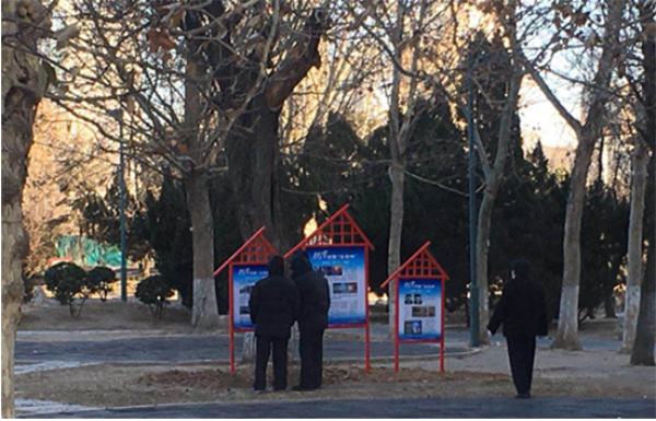 昌邑市在市中心三角公园打造的反邪教主题公园,周边群众认真阅读反邪教知识