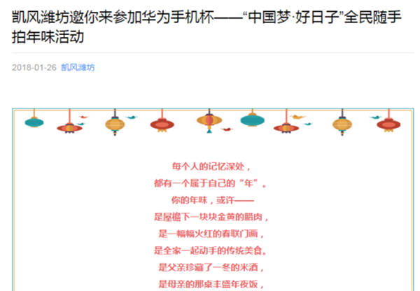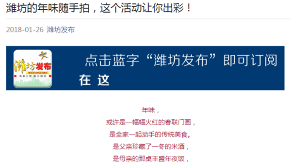 开展“中国梦·好日子”全民随手拍年味活动。通过网站及微博、微信、头条等新媒体平台进行活动推广,将“拒绝邪教、崇尚文明”的思想融入群众新春生活,发动市民捕捉具有地方特色的春节(元宵节)传统节日习俗,拍年味、拍传统、晒美德、晒幸福,倡导全民都来做传扬文明和谐新风尚、弘扬向善向上正能量的代言人。