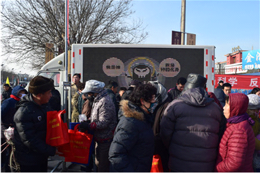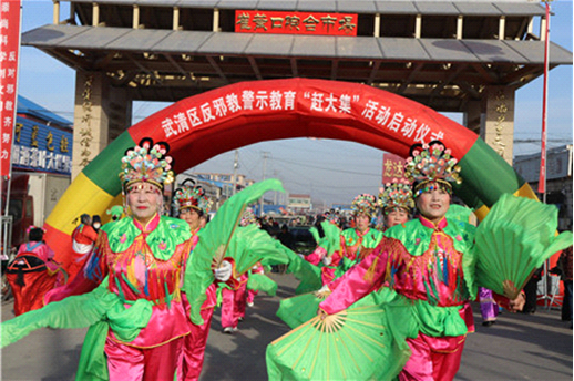 1月25日上午,天津市反邪教警示教育“赶大集”活动在武清区崔黄口镇隆重举行。活动现场悬挂标语12条,设置展板16块,各类宣传材料1万余份。参加人员众多,热闹非凡,人声鼎沸。秧歌队在现场表演了精彩的节目、应邀参加的专职律师为群众提供了法律咨询服务、大型流动宣传车播放了反邪教公益广告、志愿者发放了大量的宣传资料等,受到了广大群众的热烈欢迎。