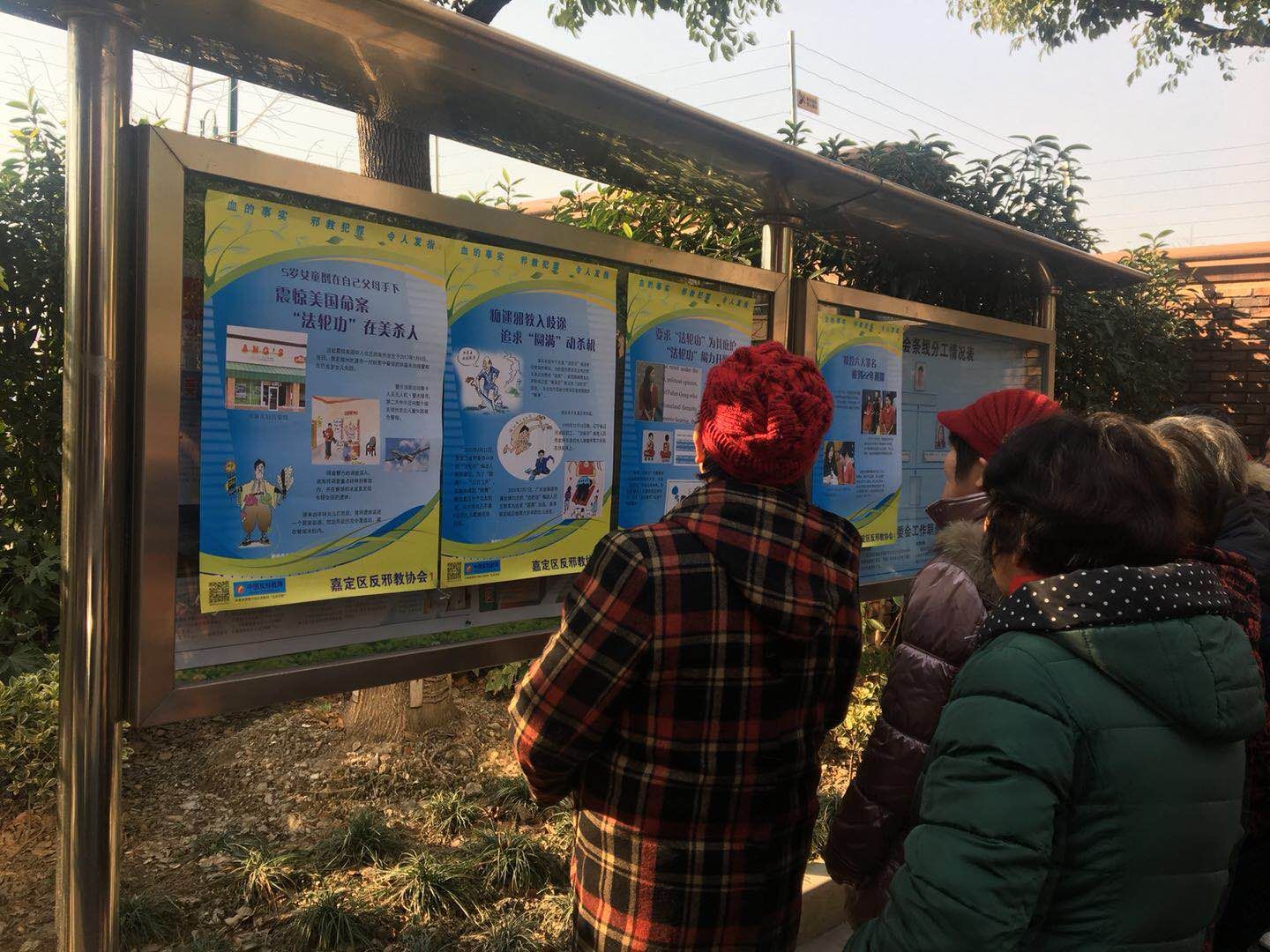 春节前夕,上海市嘉定区反邪教协会多措并举开展反邪教宣传活动,陪伴居民朋友度过一个平安幸福年。