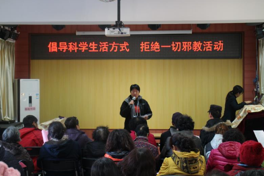 全区各街道、社区结合全国“两会”安保工作,将反邪教警示教育宣传融入其中,在宣传会上向社区居民讲解邪教的本质特征、邪教对家庭、社会的危害等相关知识,提高了广大居民群众识邪、防邪、反邪的思想意识。