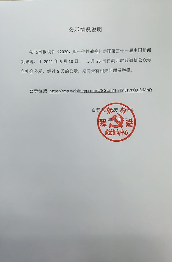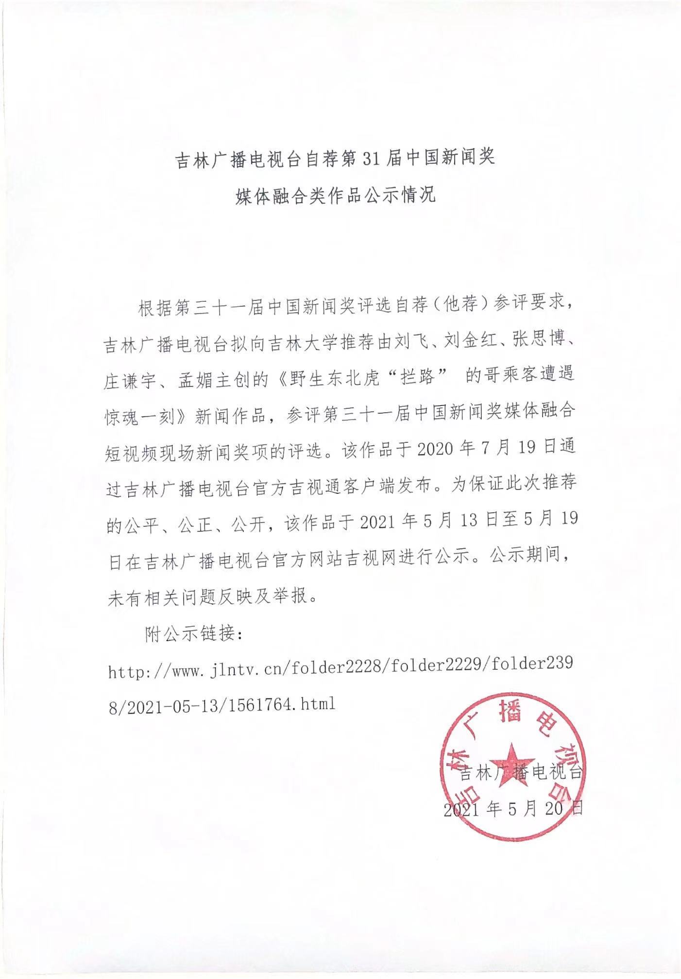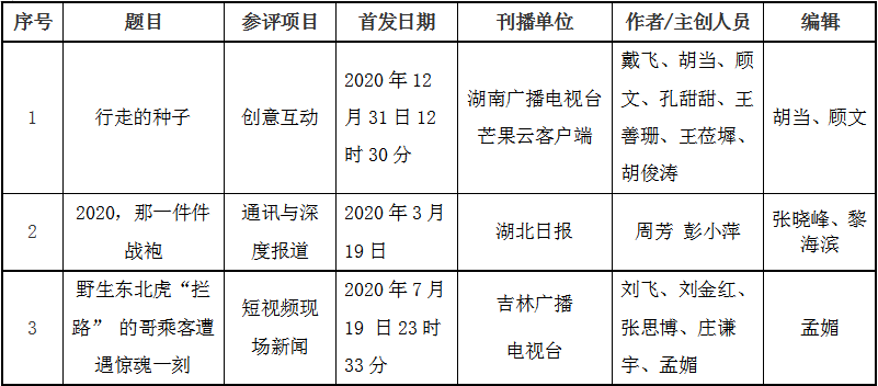 根据中华全国新闻工作者协会(简称中国记协)有关中国新闻奖评选办法,经社会单位推荐和个人自荐、他荐,由吉林大学新闻与传播学院第31届中国新闻奖初评委员会的专家认真评审,拟报送以下3件作品参评第31届中国新闻奖。从即日起分别在吉林大学文学院官网、中国吉林网进行公示,欢迎社会各界监督、评议。