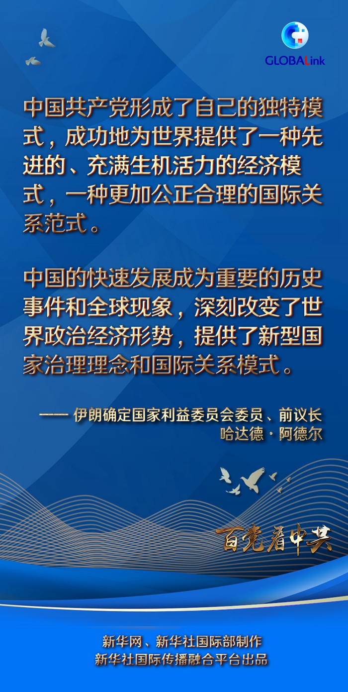 新华社德黑兰4月13日电 “中国共产党形成了自己的独特模式,成功地为世界提供了一种先进的、充满生机活力的经济模式,一种更加公正合理的国际关系范式。”日前在德黑兰接受采访时,伊朗确定国家利益委员会委员、前议长哈达德·阿德尔这样评价中国共产党领导中国发展的世界意义。