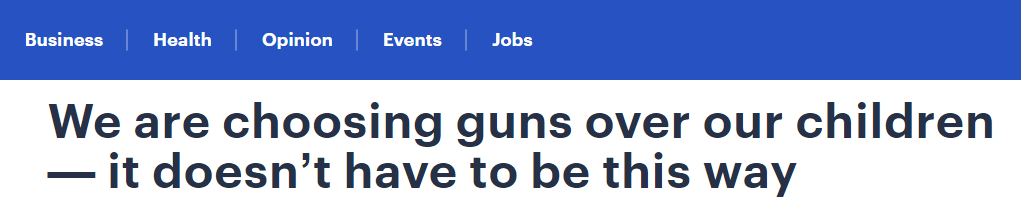 科恩写到,这个男孩活了下来,而且又能走路了,但他不会就此“康复”。“如果我们不正视枪支从本质上就是危险的这一事实,以及围绕枪支的文化不仅危及我们自己,也危及我们的孩子(这一真相),那么孩子们就不会安然无恙,无论他们是否被枪击中。”