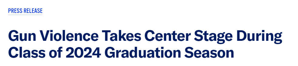 枪支管制倡导组织“为每个城镇带来枪支安全”(Everytown for Gun Safety)网站的文章也写到,刚刚过去的美国阵亡将士纪念日周末也正值毕业季,但全美各地毕业生们的庆祝活动却被频发的枪支暴力事件破坏。