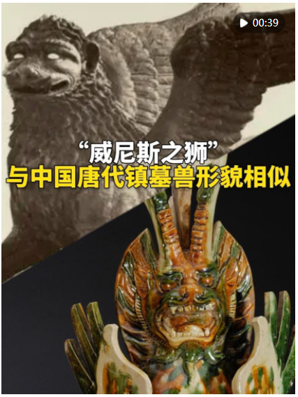 意大利一个跨学科研究团队不久前宣布,经过铅同位素分析等现代科技手段以及艺术风格对比,认为“威尼斯之狮”最初铸造材料是从中国长江下游矿区提炼的铜,其形象与中国唐代镇墓兽相似。