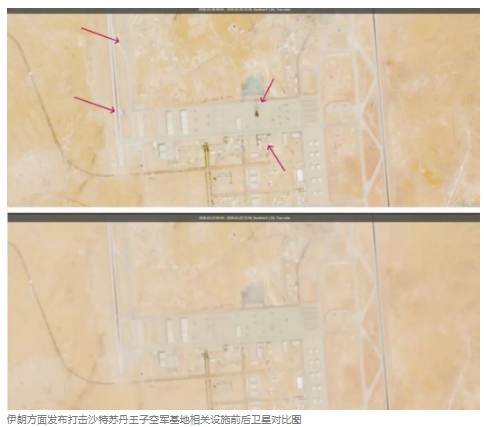 伊朗方面发布打击沙特苏丹王子空军基地相关设施前后卫星对比图