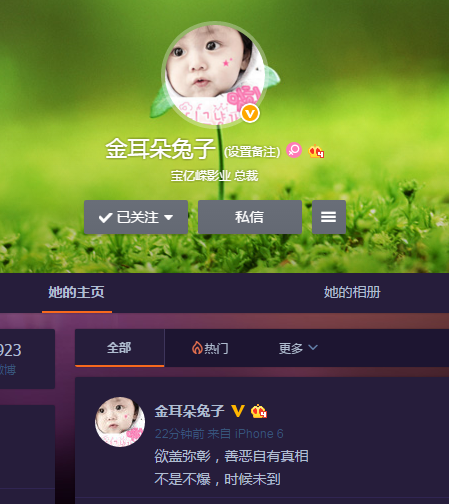 身为宝亿嵘影业总裁的马蓉发博疑似回应