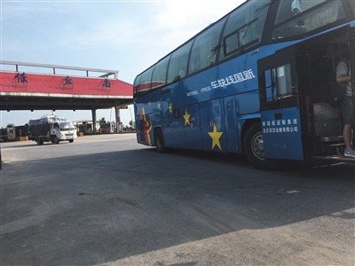 8月16日,开往湖北钟祥的大巴脱离原定线路,在任丘南高速路口违规上客。