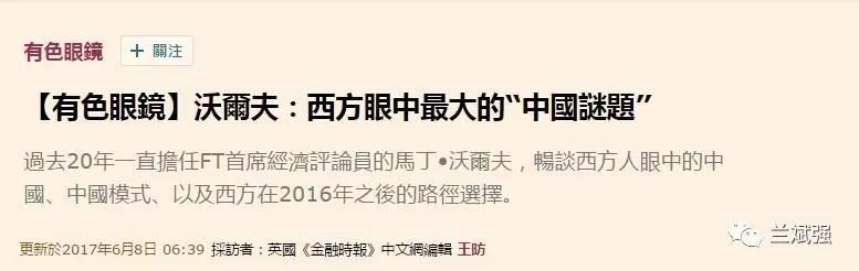 昨天,英国《金融时报》发表一篇附带视频的文章,题为:“沃尔夫:西方眼中最大的‘中国谜题’”,文章中,《金融时报》副主编,首席经济评论员沃尔夫以一个经济学家、思想家及媒体人的角度,就西方人眼中的中国、中国模式、以及西方在2016年之后的路径选择谈了他的看法。在他的言语中,不时显露出对中国的发展成就、中国政治体制在中国发展中作用的赞叹,以及对西方民主制度的反思。他的许多观点无形中对中国某些诋毁中国现体制、竭力推崇西方“民主自由”体制的“专家学者”是一次有力的驳斥。