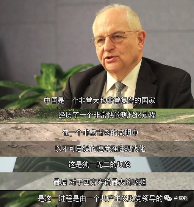 他说:“对我们西方人来说,共产主义是一个非常奇特的意识形态,它来自西方,却被西方所拒绝。现在共产主义出现在中国,这个文明古国宣称它是共产主义的,我们很难理解这意味着什么。这真的可能发生吗?它又是怎么运行的?”按照西方的价值观和标准“中国的政治体制是中央集权的,原则上来讲显然是非民主的,但同时中国又有一个充满活力的市场经济。这种奇怪的对比也是独一无二的。”一个共产主义国家怎么会有如此活跃的市场经济?“这是一个根本性的谜题。”