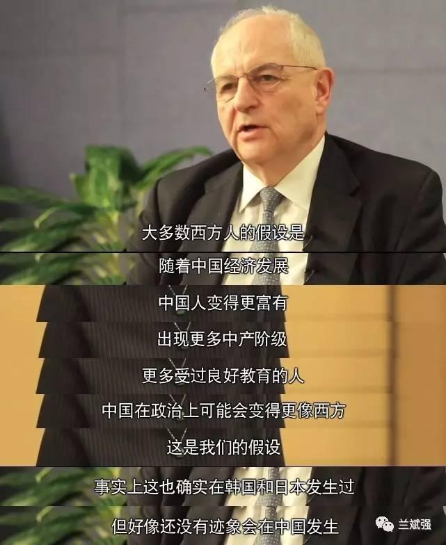 对此,沃尔夫也给出了答案:“大多数西方人的假设是,随着中国经济发展,中国人变得更富有,出现更多中产阶级和受过良好教育的人,中国在政治上可能会变得更像西方 。这一过程确实在韩国和日本发生过,但好像还没有要在中国发生的迹象。”