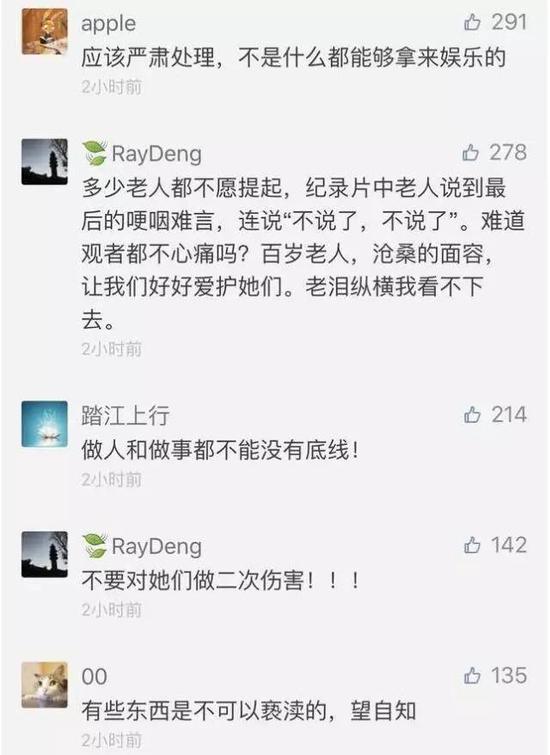 此前,这部记录22位"慰安妇"幸存者的严肃纪录片,被截图并配文“我真的委屈啊”、“不知所措”等文字成为表情包。