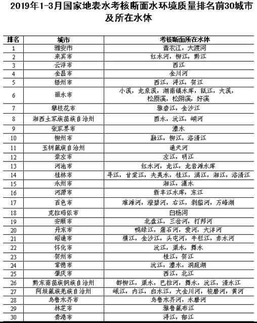 中国环境监测总站副站长王业耀介绍,排名城市包括设置有国家地表水考核断面的所有地级及以上城市。排名不涉及城市地下水、黑臭水体,以及未设置国家地表水考核断面的较小河流、湖泊或水库。
