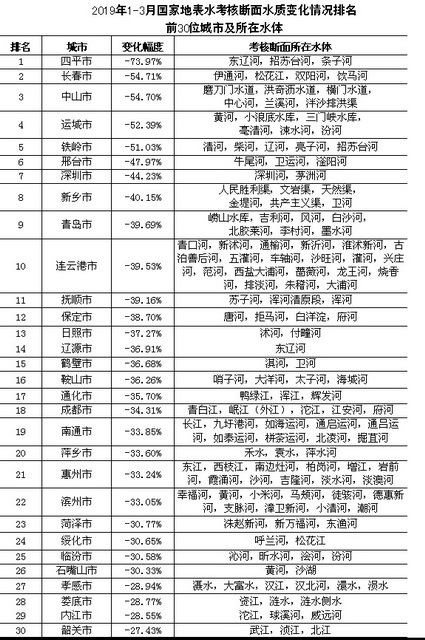 胡克梅表示,从2019年第一季度起,生态环境部将每季度开展地级及以上城市国家地表水考核断面水环境质量状况及变化情况排名,公开发布国家地表水考核断面水环境质量相对较好的前30位城市和相对较差的后30位城市名单、与上年同期相比水环境质量改善幅度相对较好的前30位城市和相对较差的后30位城市名单,以及该城市相对应的国家地表水考核断面所在水体的名称。