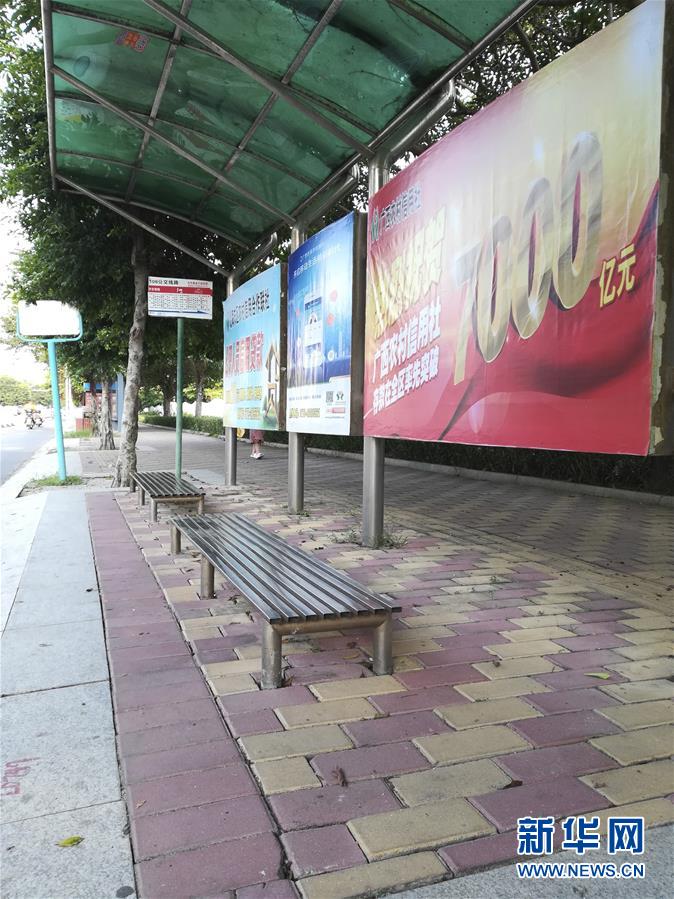 北海一公交站仅有一巴掌高的候车凳(5月25日摄)。新华社记者 潘强 摄